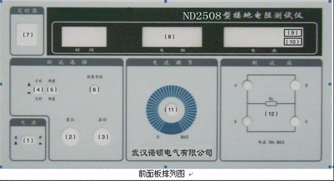 11)“測試電流”調(diào)節(jié):調(diào)此調(diào)壓器來調(diào)節(jié)輸出電壓,從而調(diào)節(jié)負載中的測試電流至規(guī)定值。