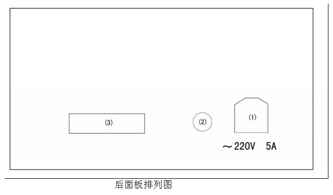 1)“電源”插座:輸入AC220V、50Hz電源,內(nèi)裝5A/8A保險絲一只。