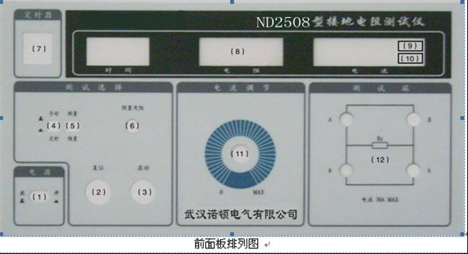 (11)“測試電流”調(diào)節(jié):調(diào)此調(diào)壓器來調(diào)節(jié)輸出電壓,從而調(diào)節(jié)負(fù)載中的測試電流至規(guī)定值。