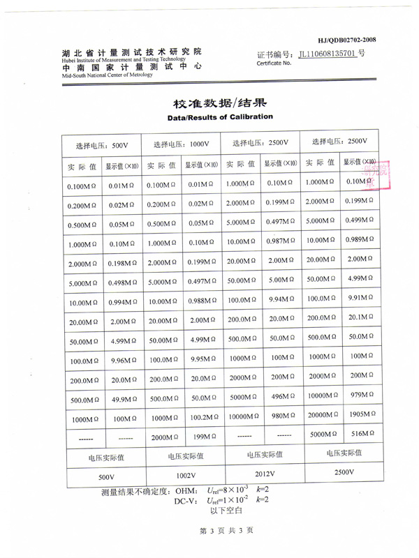 • 分 辨 率:0.01MΩ,0.1MΩ,1.0MΩ,10.0MΩ